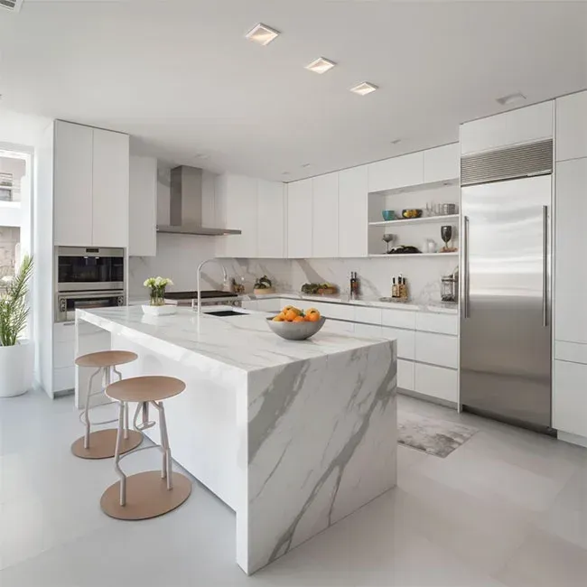 The size of your kitchen determines the layout, so every inch of kitchen space is crucial. Always remember the “kitchen triangle” rule to ensure your design looks both useful and functional.